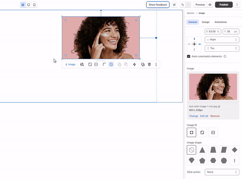 Once you've added the image, you can customize it to match your design.