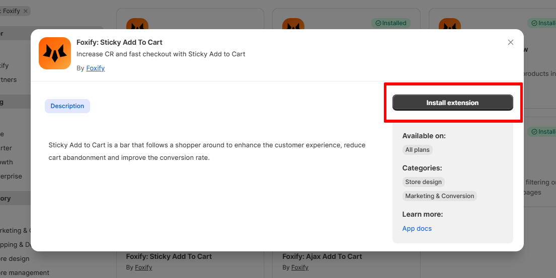Do I need to install Foxify: Sticky Add To Cart from the Shopify App Store?