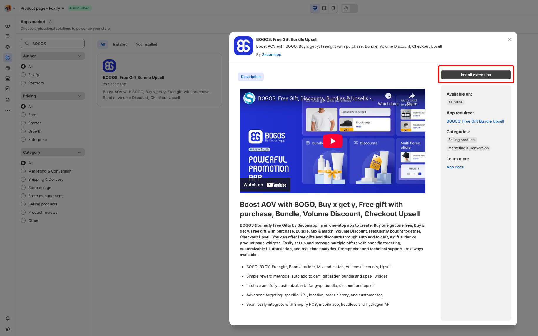 ## How to use BOGOS: Free Gift Bundle Upsell in Foxify Smart Page Builder