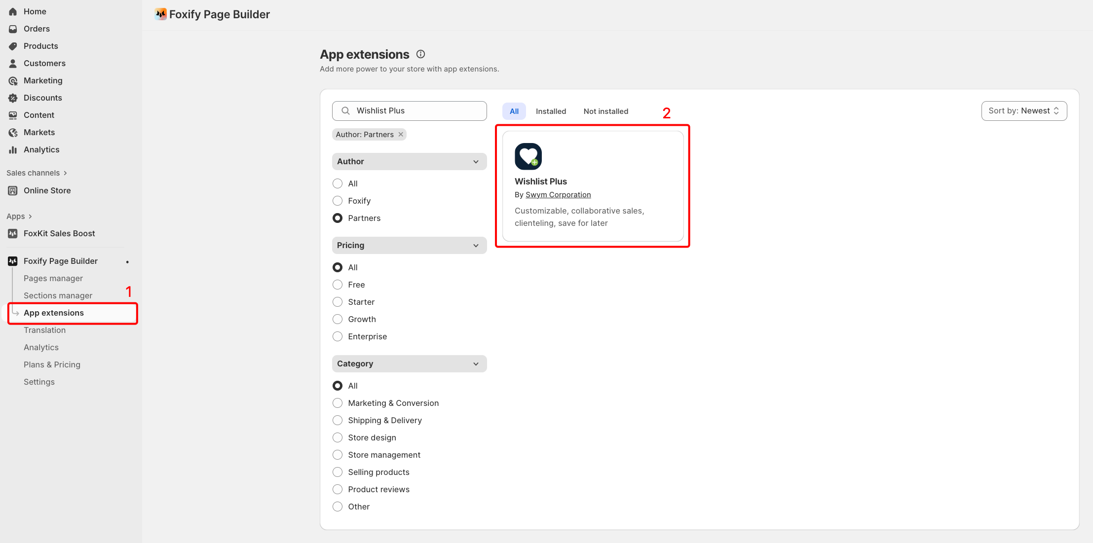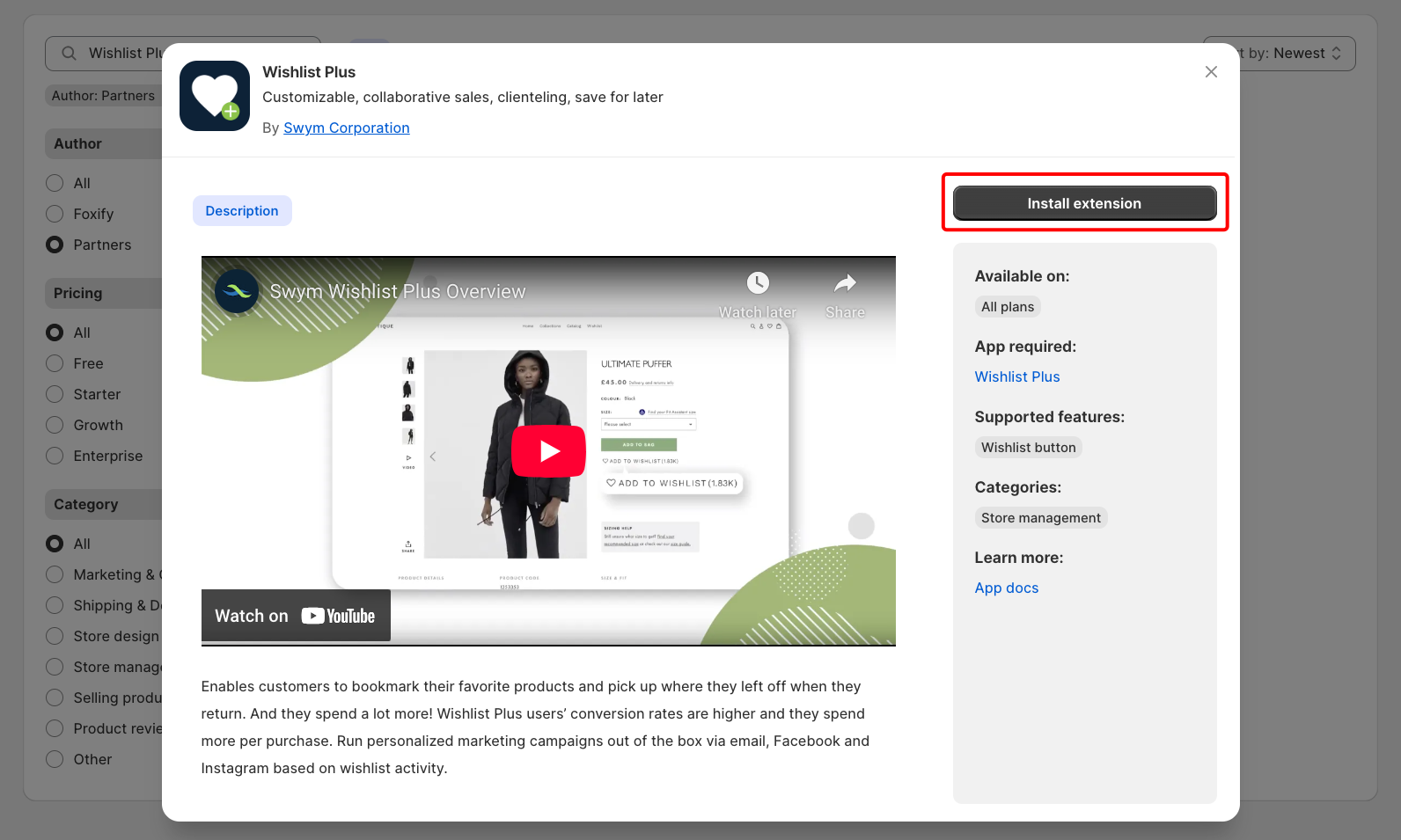 2. **Filter for Author: Partner**, look for **Wishlist Plus**