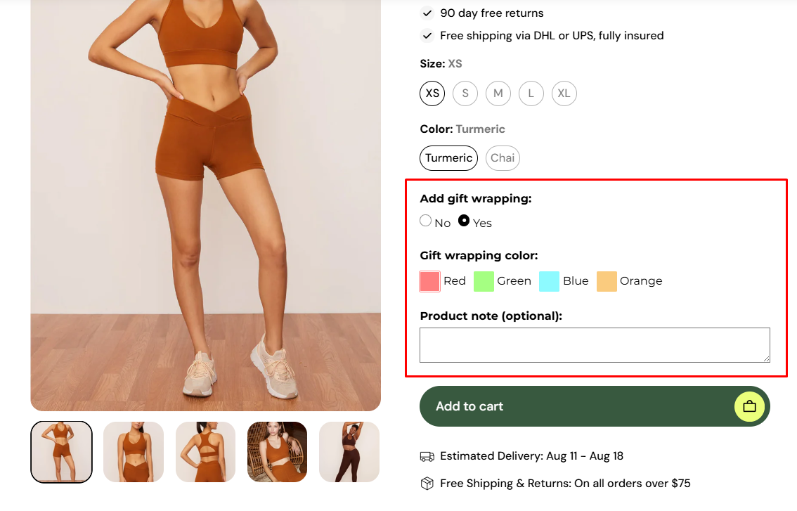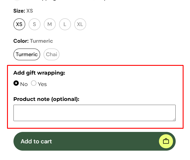 * Add text inputs, radio buttons, checkboxes, dropdown menus, color swatches, and more to your product pages