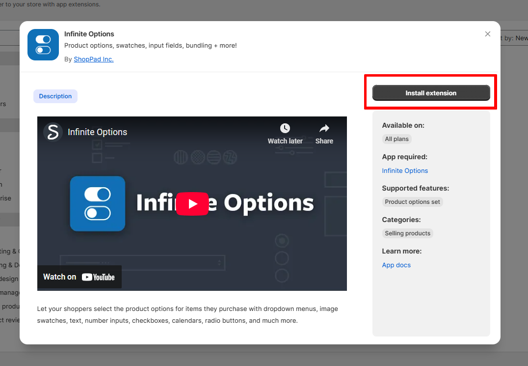 ### Install Infinite Options from the Shopify App Store