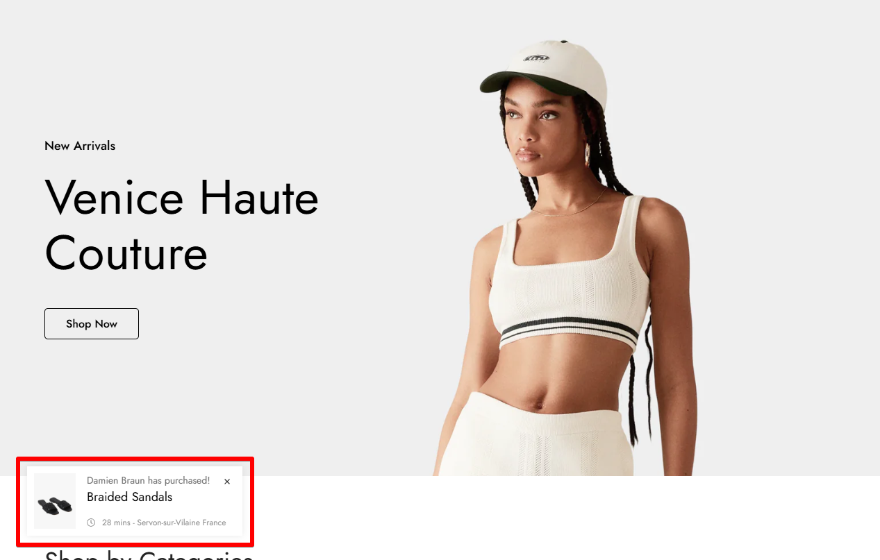 The **Sales notification** feature motivates your customers to buy more, boosting average order revenue and sales records.