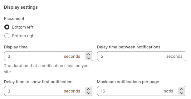 * **Delay time to show the first notification**: Decide how soon the first notification appears after page load (e.g., 3 seconds).