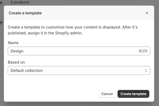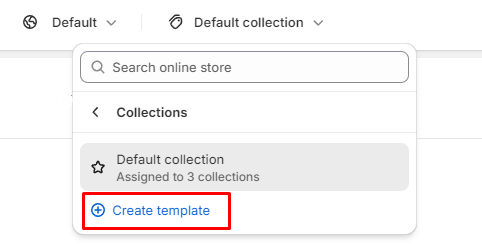 1. In the theme editor (Customize), use the page selector to open Collections > Create template.