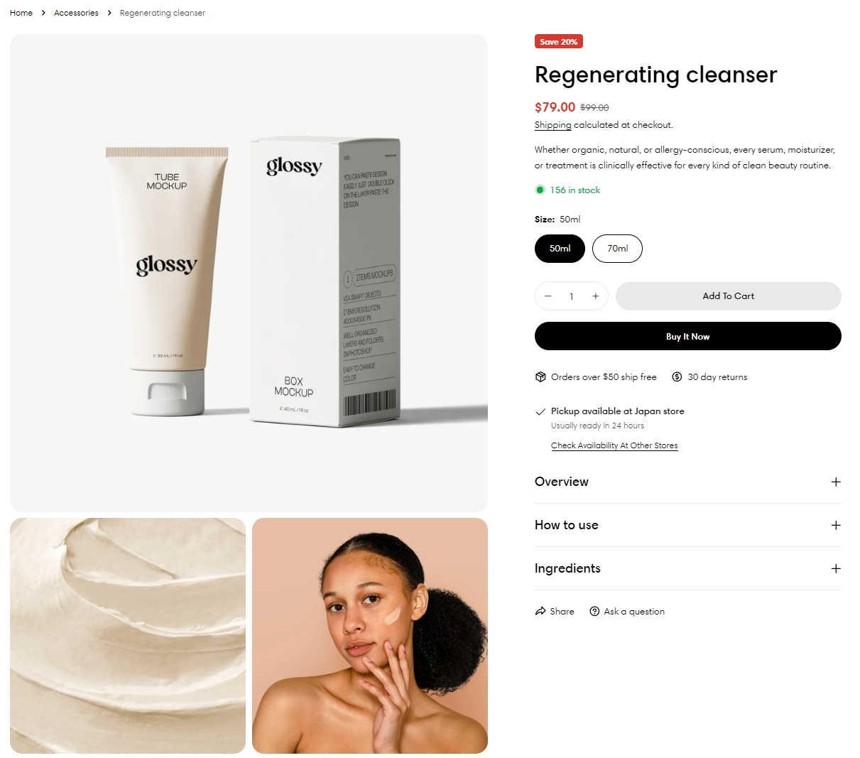 A product page provides essential product information such as price, features, reviews, and product comparison.