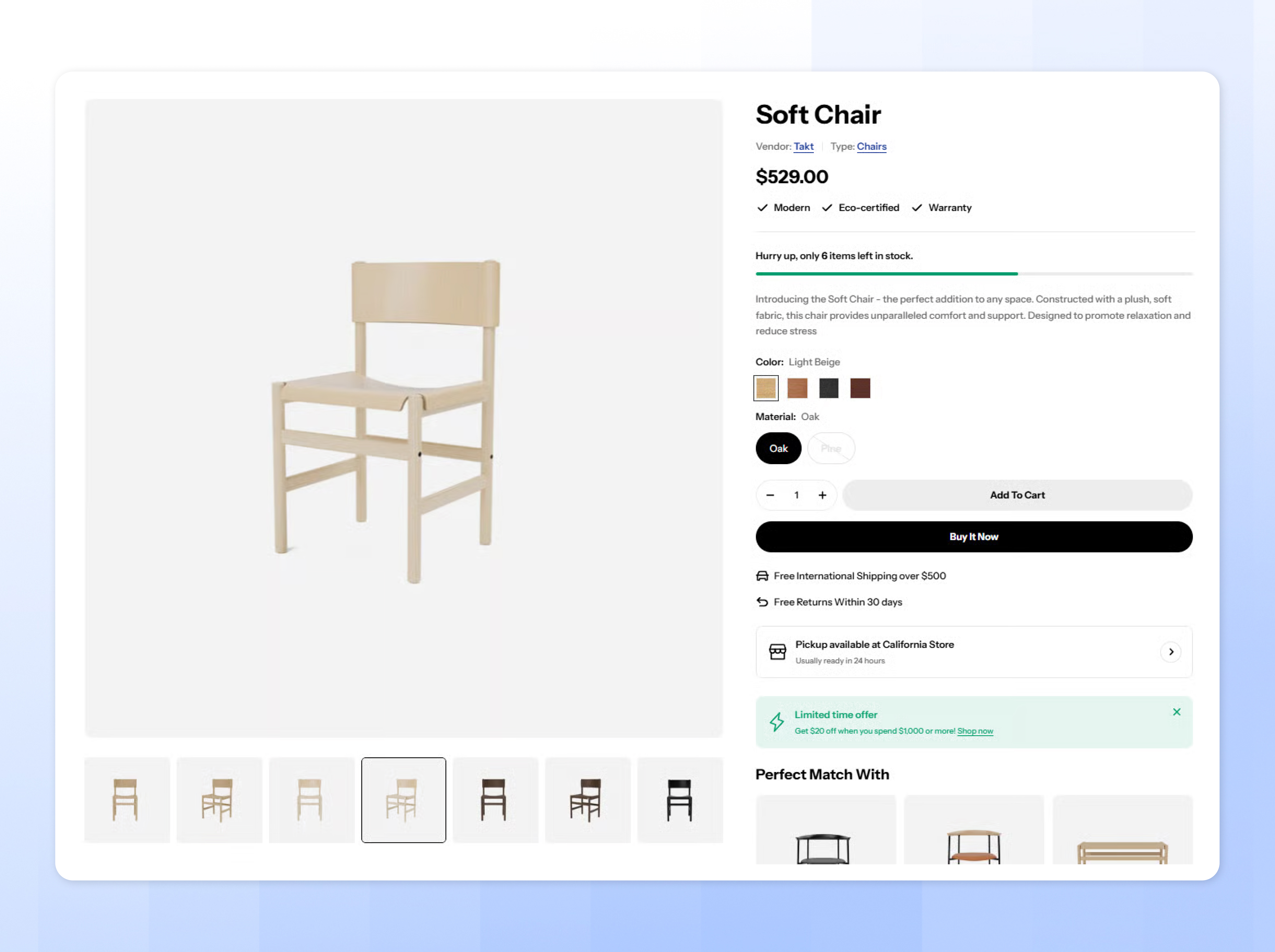 This section provides crucial data about an individual product such as price, title, buy buttons, etc. You can change the product information by re-ordering, removing, and adding blocks.