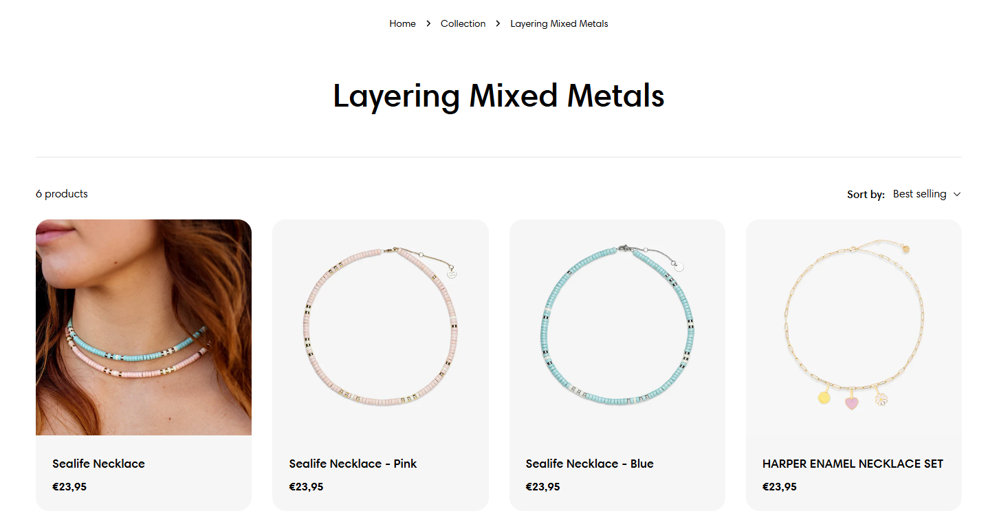 For example: We have a necklace item that comes with two color variants, and you have each of the colors as a separate product, then you can create a combined listing that displays those two products on the same product page.