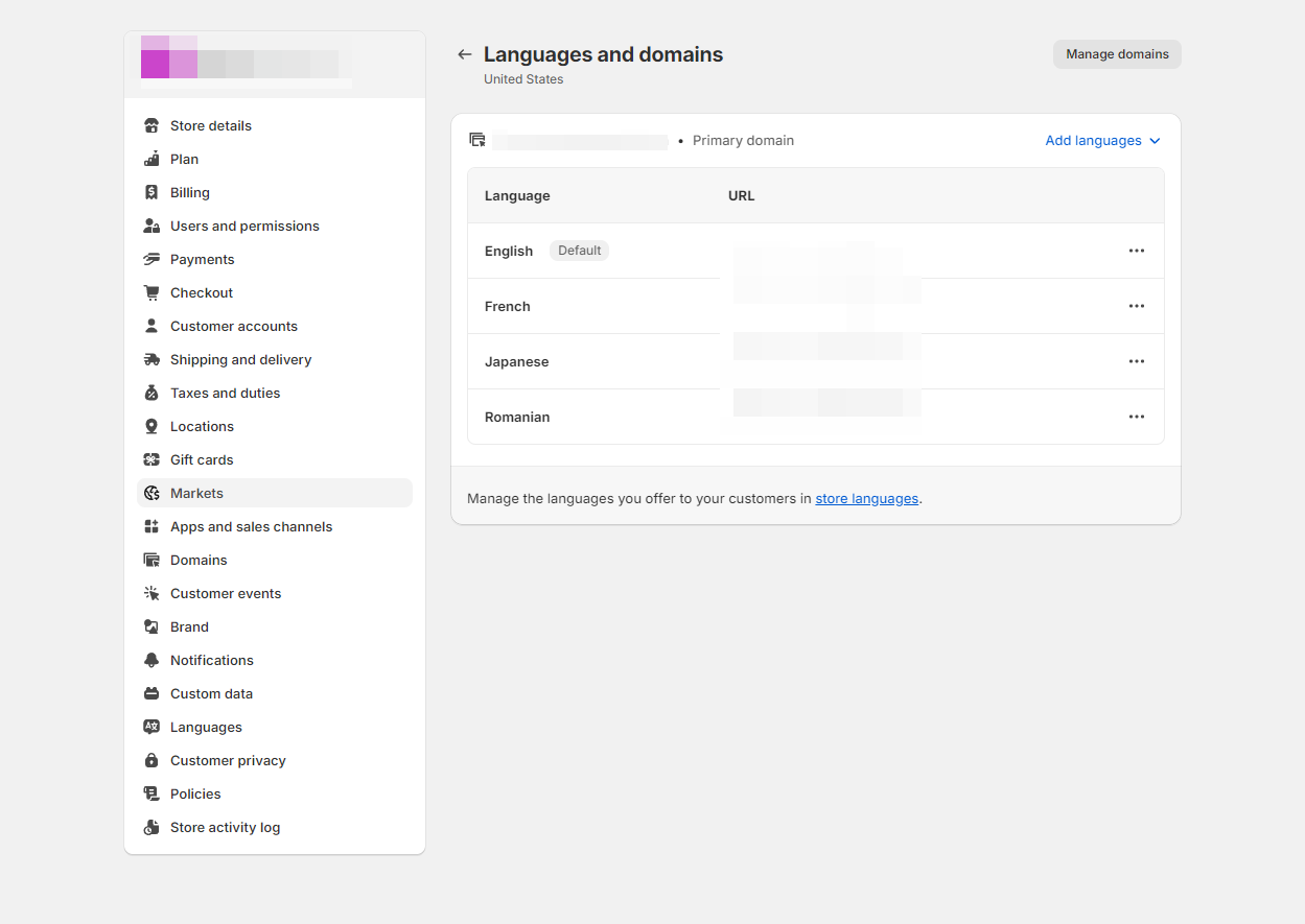 Optional: After finishing setting up languages, follow these steps to manage how customers experience your store for one specific market only.