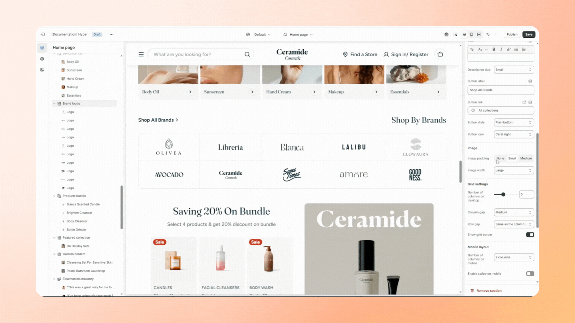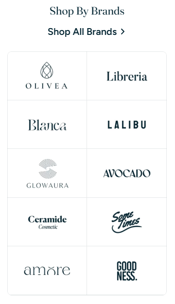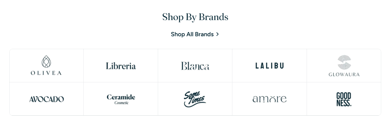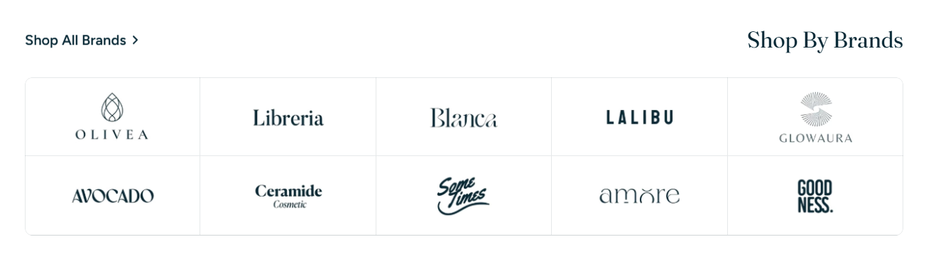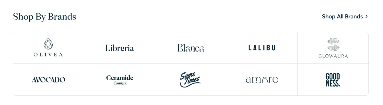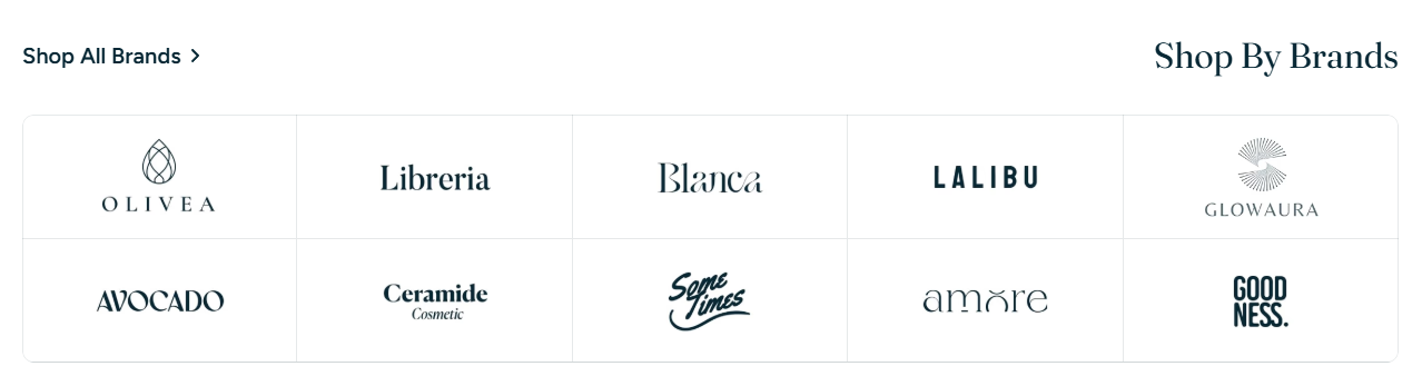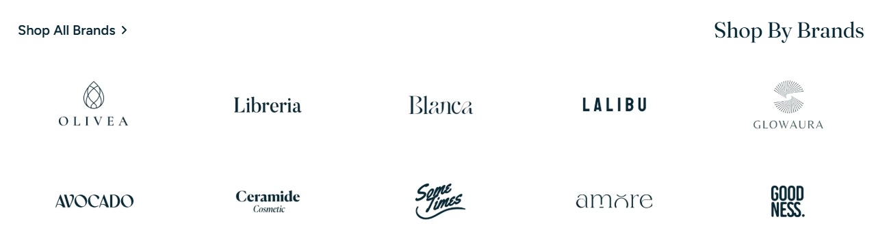 The **Brand logos** section allows you to display logos in a customizable grid format—ideal for building trust, showcasing retail partnerships, or promoting house brands.