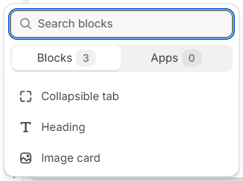 You can add more blocks to the collapsible tabs ([Collapsible tab](#collapsible-tab)/ [Heading](#heading)/ Image card).