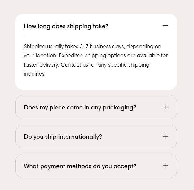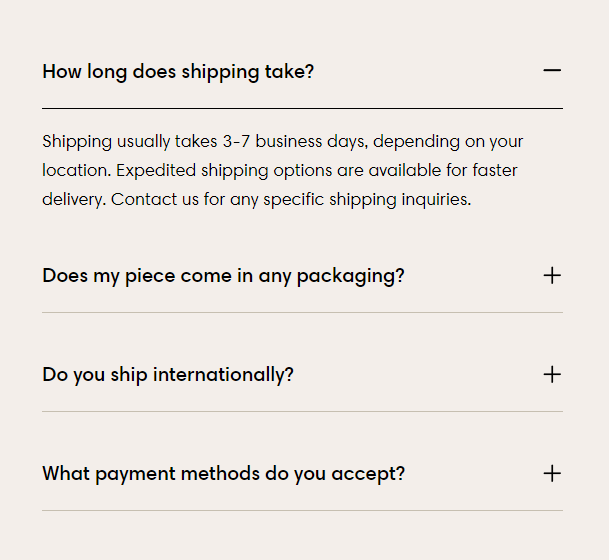 Pro tip :star:: Choose an icon relevant to the content (e.g., a question mark for FAQs or a delivery truck for shipping information).