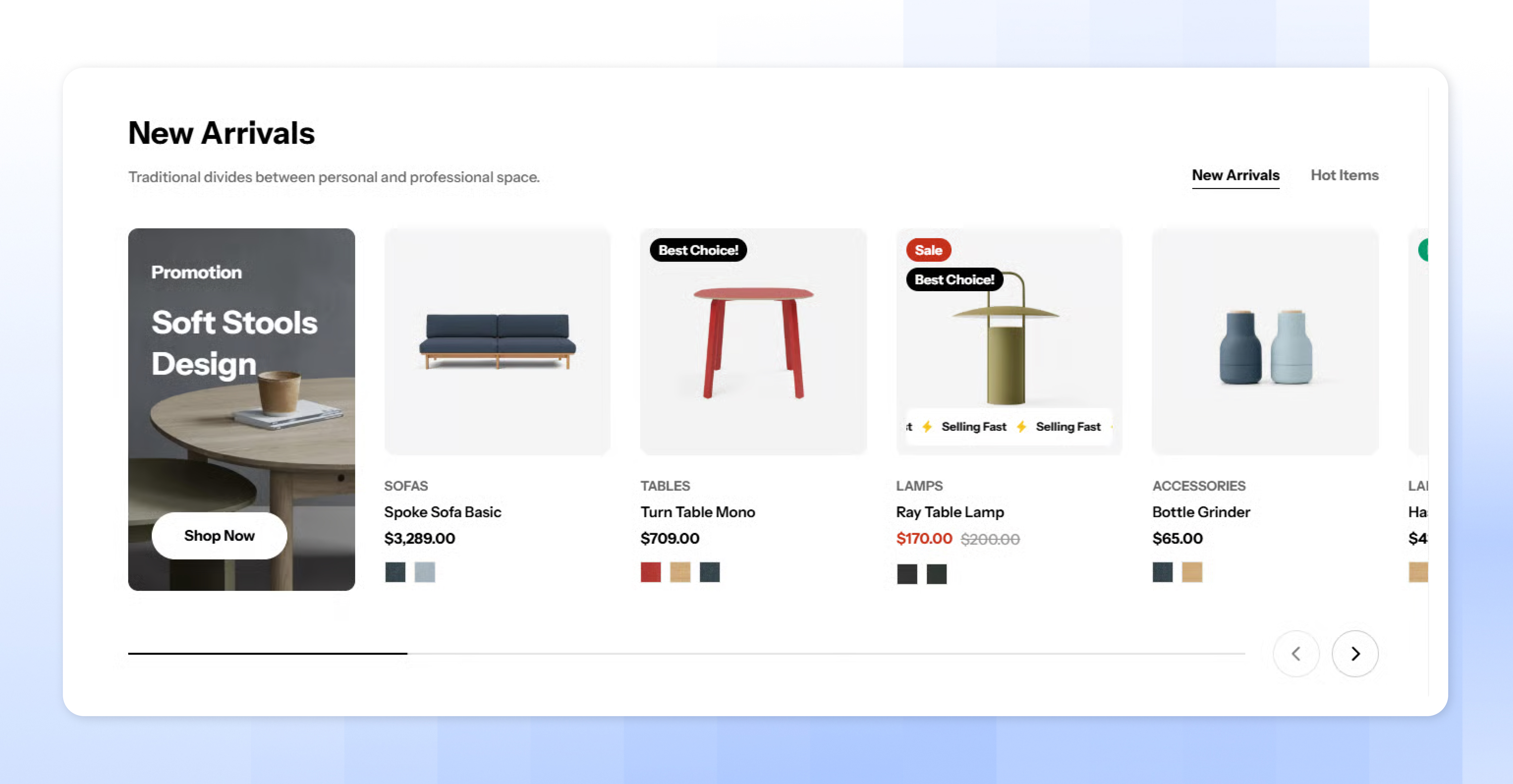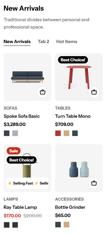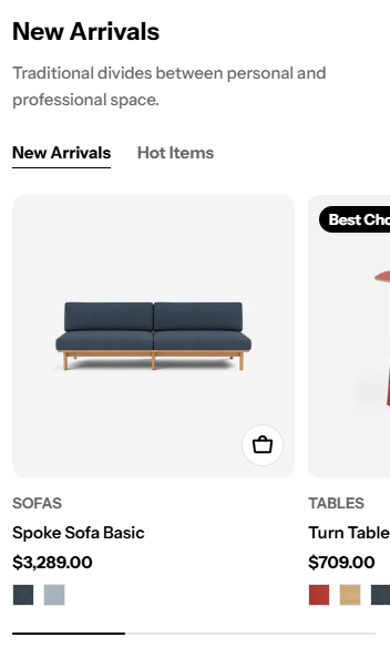 Use the swipe option for larger collections to save space while showcasing more products.