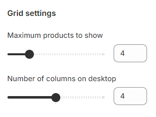 * **Number of columns on desktop** (between 2 and 6): Adjust the number of products displayed per row for desktop users.