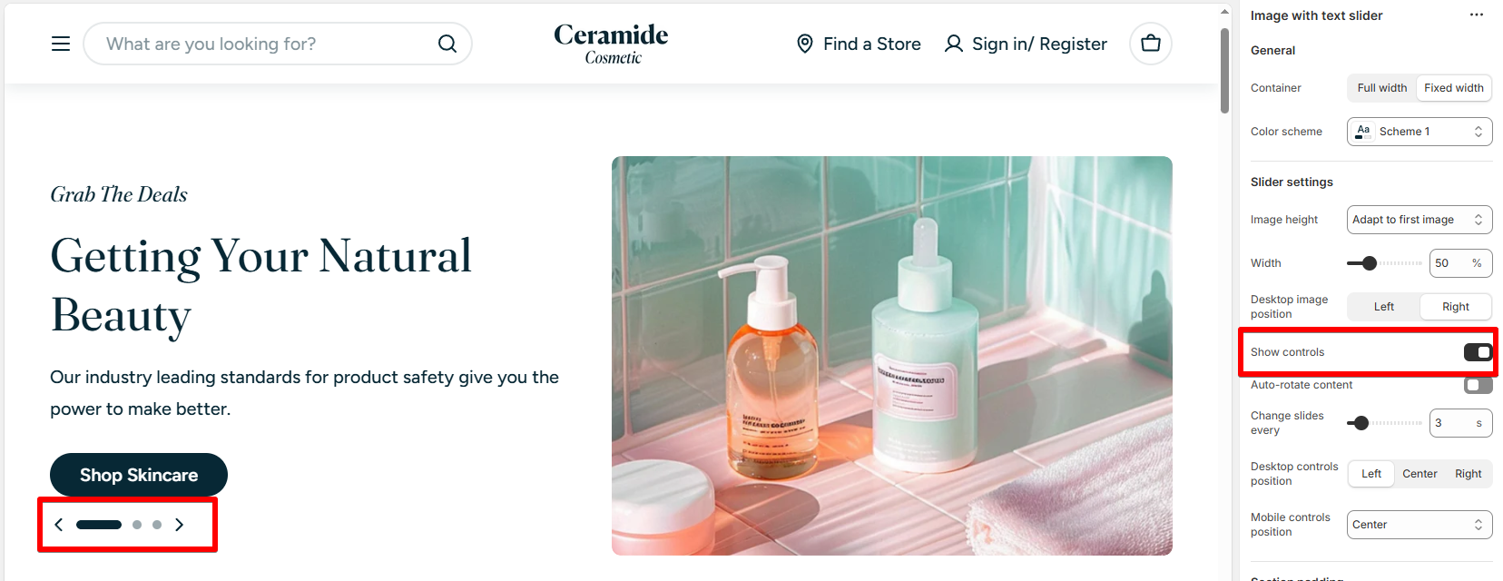 * **Show controls**: Toggle arrows for manual slide navigation.