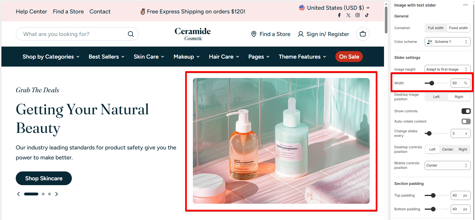 * **Width**: Adjust how much horizontal space the image portion will take (40-80%).