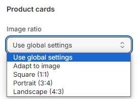 Image ratio: Set the image ratio of the product cards.