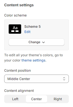 Content position: Position of content in section.