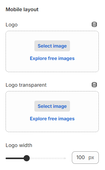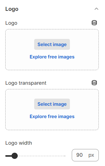 You can upload both a **Logo** and **Logo transparent** for your store, and adjust the Logo's width in this setting.