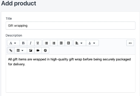 For customers choosing this gift-wrapping service, you can charge on a per-product basis by setting the product price.