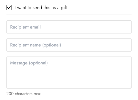 Customers buying a gift card for someone else have the option of completing extra fields for recipient name, email, and message fields.&#x20;