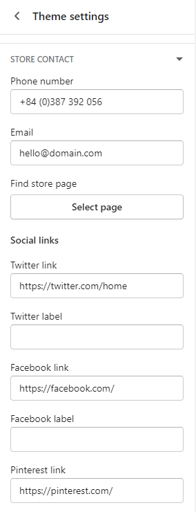 In your theme editor (Customize), go to Theme settings > Store Contact to add/remove social links you want to show/hide.