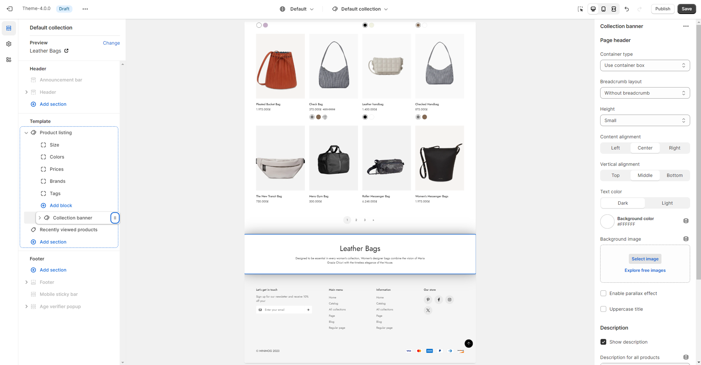 Then, you will see that all the collection banner components, including the collection image (if being set up) and description, are moved to the new position.