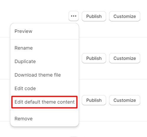 In the Minimog theme you want to change, select Actions > Edit default theme content.