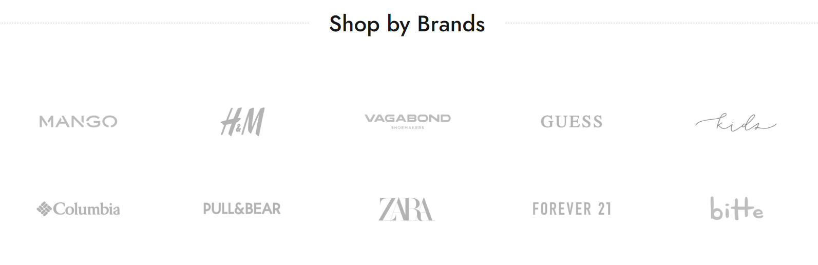 The logo list features the logos of your store's brands/vendors or partners. The brand list is the perfect way to create your brand validation.