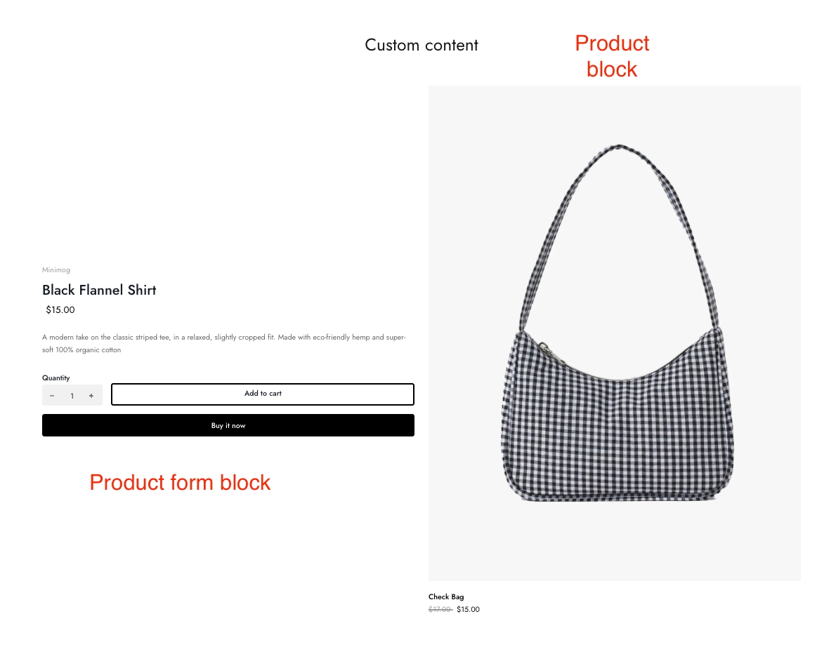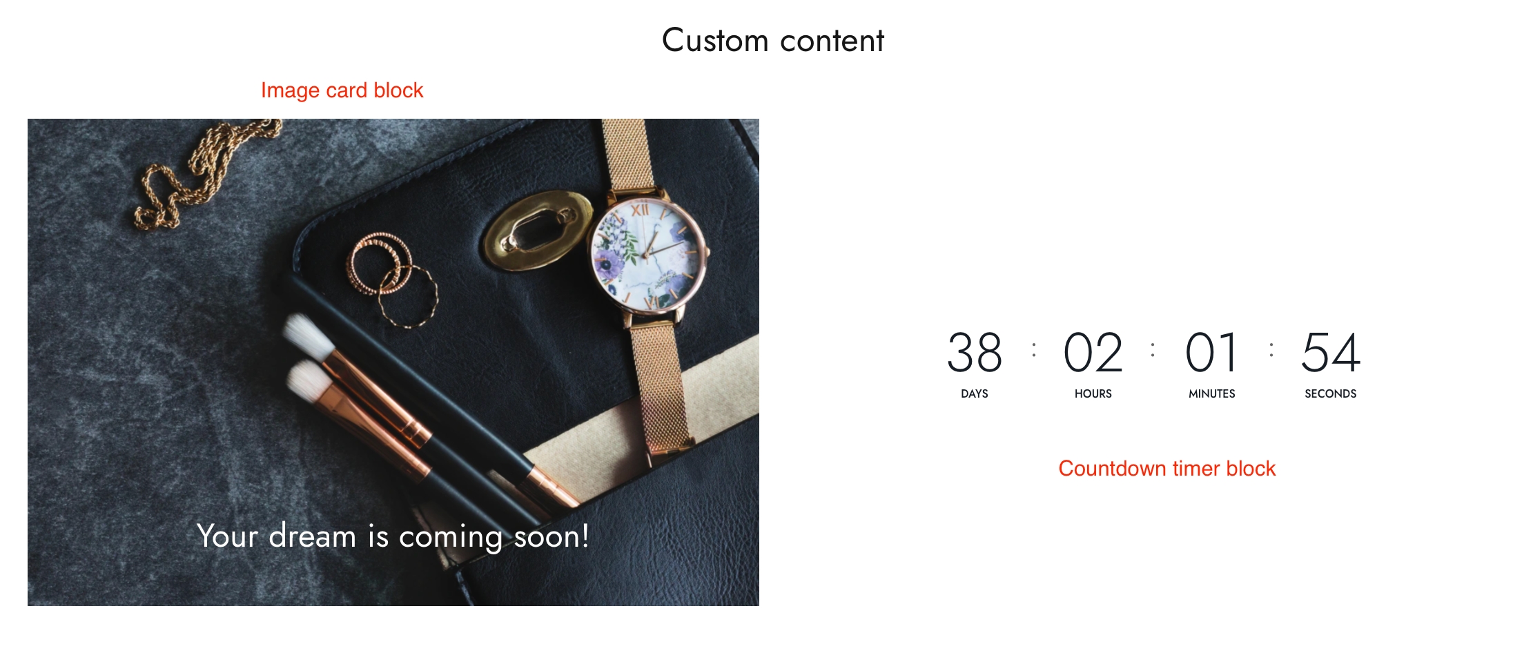 Some blocks are similar as they have appeared in theme sections such as countdown timer, product form (featured product), image cards, etc. Each of them will have its own settings.
