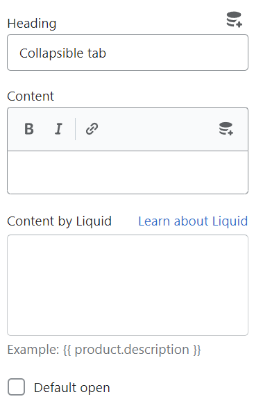 Add a heading and the extra information on the tab. You can also add content using custom liquid.