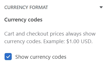 This setting lets you show currency codes in the cart and checkout prices.