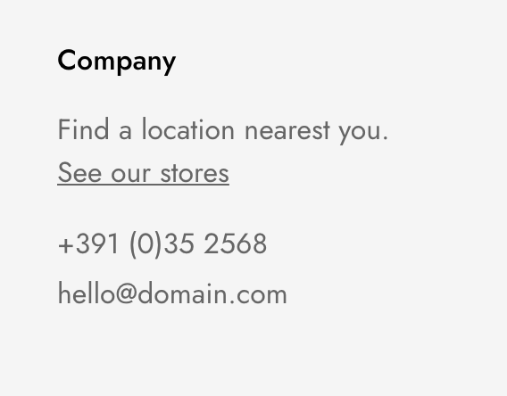 Display your store details like the store's phone number, email address, and add social links (if present).