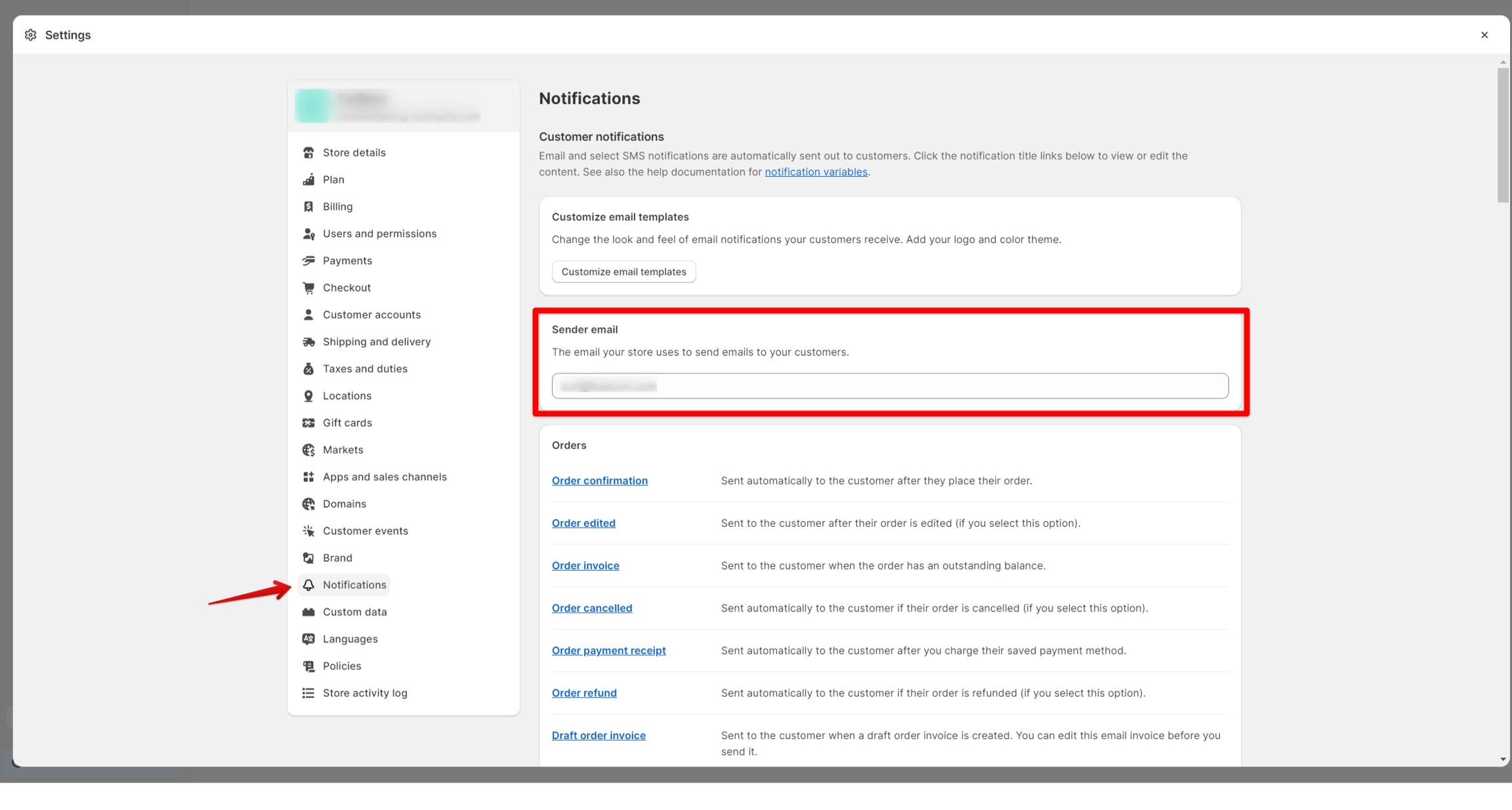 Check that the sender email address you have entered in your Shopify admin settings > Notifications is correct.