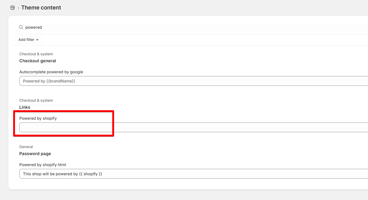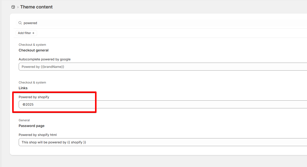 By default, Shopify adds a **“Powered by Shopify”** message in your store’s footer.