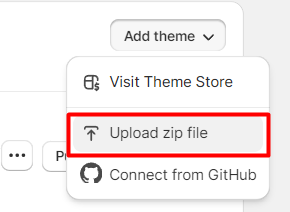 2. In the **Theme library** section, click **Add theme** > **Upload zip file**.