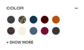 For example, a *Fabric color* filter can display a small color swatch for each filter value.