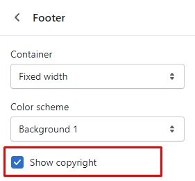 To show or hide copyright at the bottom of your Shopify store, simply check the [Footer](https://docs.foxecom.com/zest-theme/pages-global-sections/footer) section settings in your theme editor, and check/uncheck the corresponding option.&#x20;