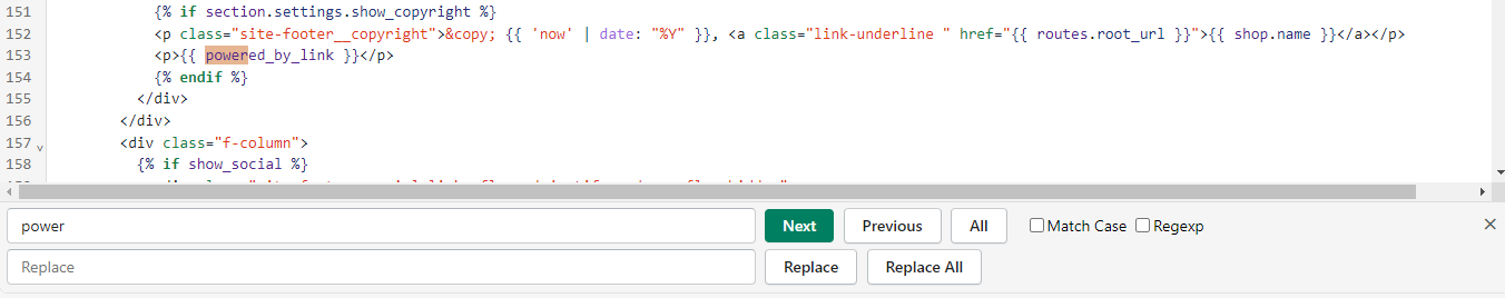 3. Hit Ctrl + F (Command + F) to open the code search box > Search *power\_by\_link*.
