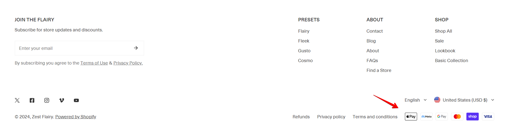 The payment providers that you include in this list will determine which payment icons shown on your online store.
