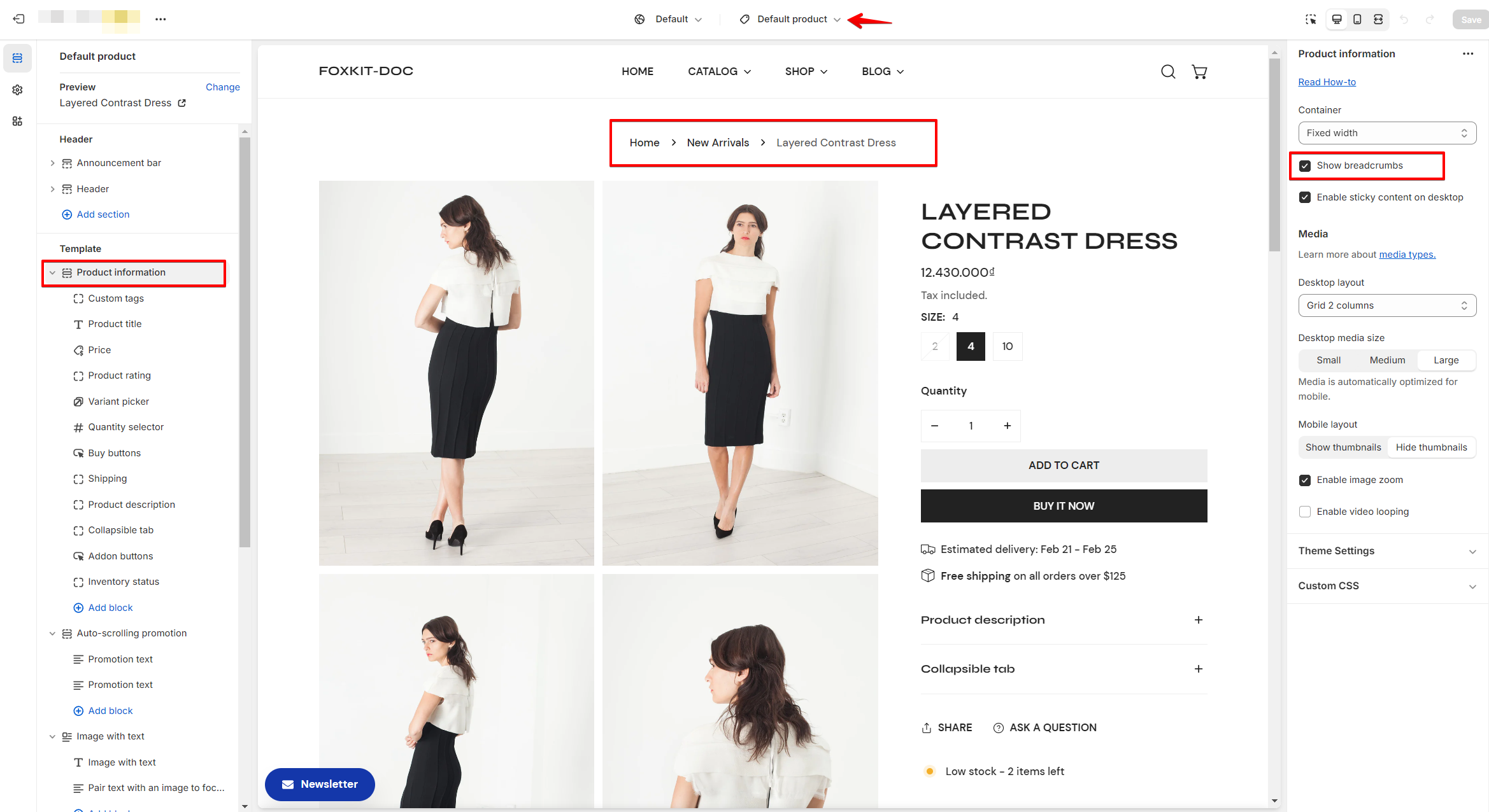 #### **3. Enable the breadcrumbs on your theme editor.**